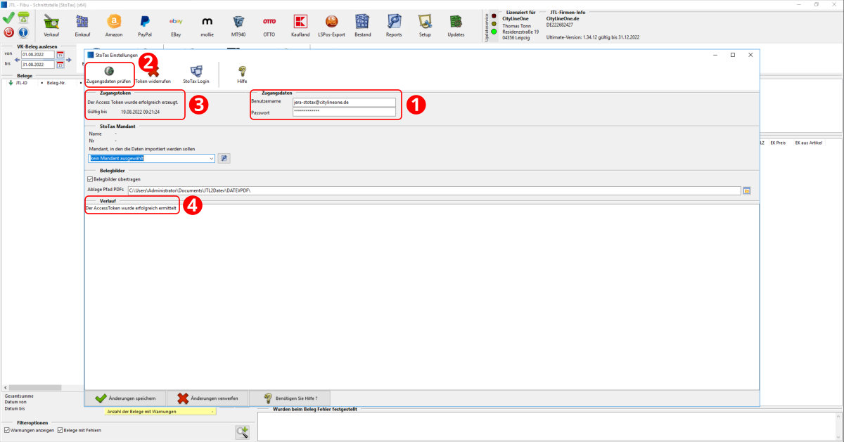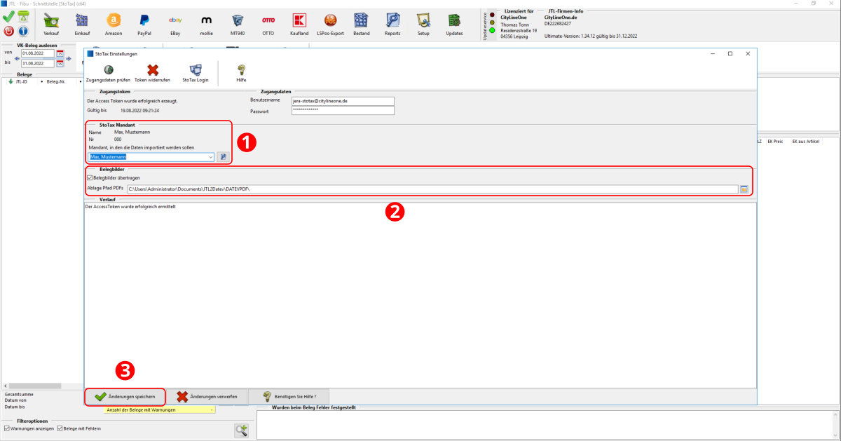 Öffnen Sie JTL2Stotax und navigieren zu den Punkten: