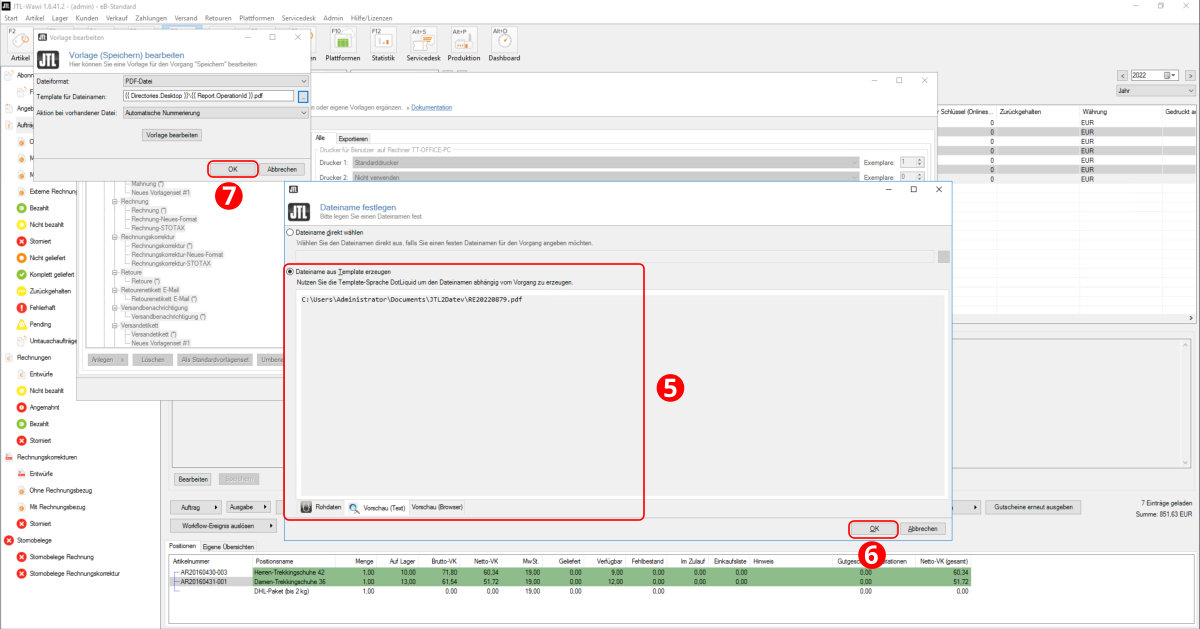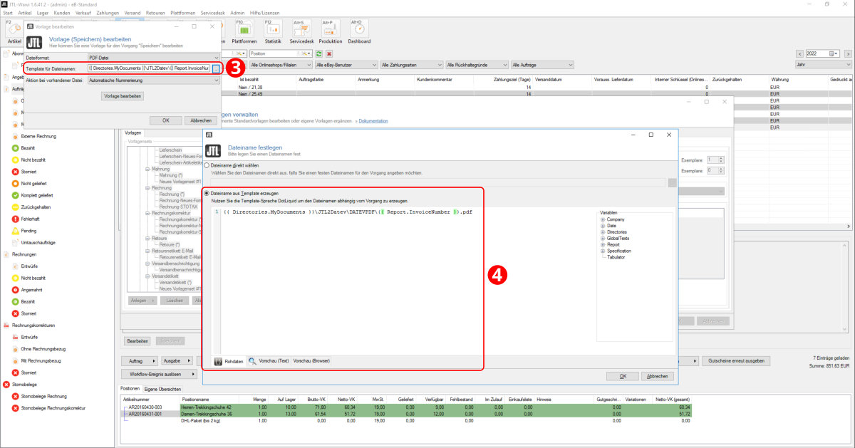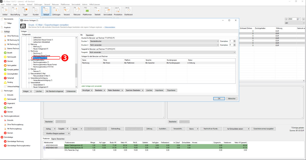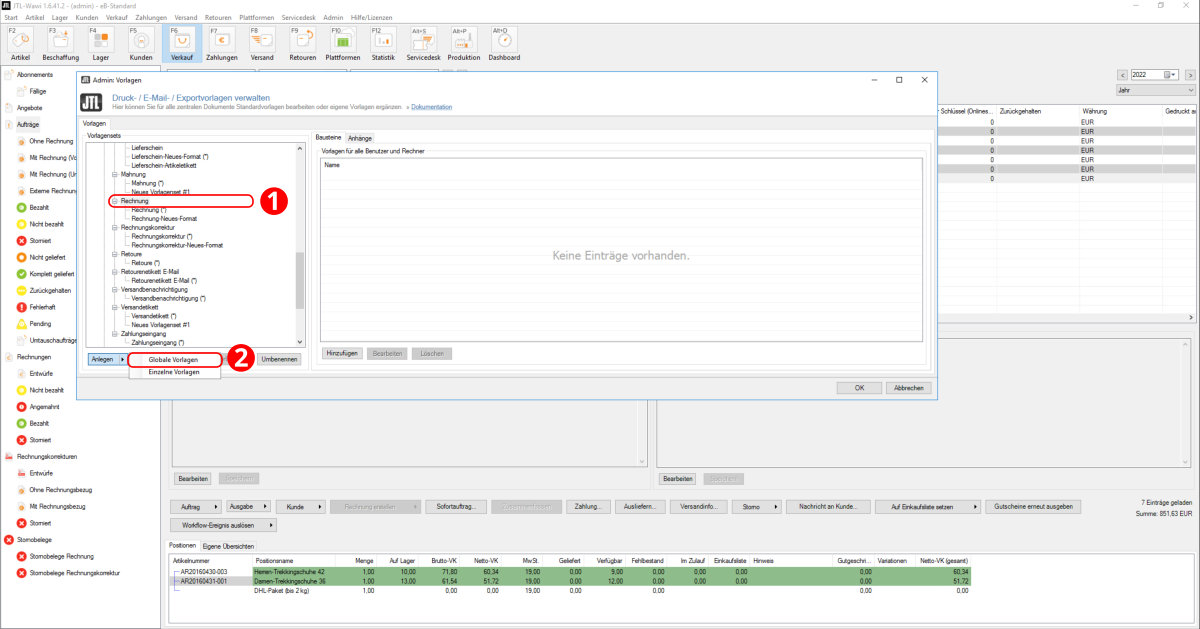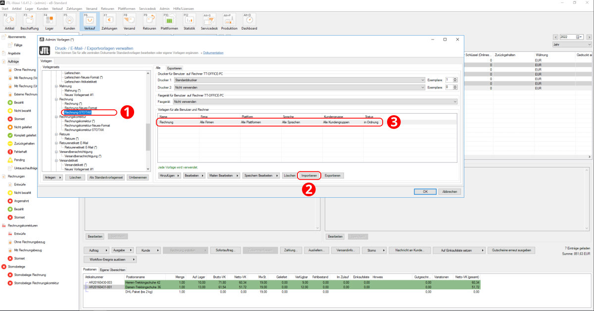 Das Vorlagenset "Rechnung" wurde nun importiert (Punkt 3).