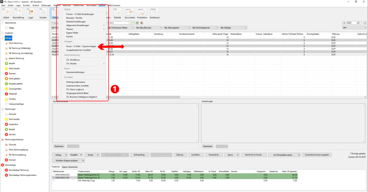 Öffnen Sie die JTL-Wawi und navigieren zu den Punkten: